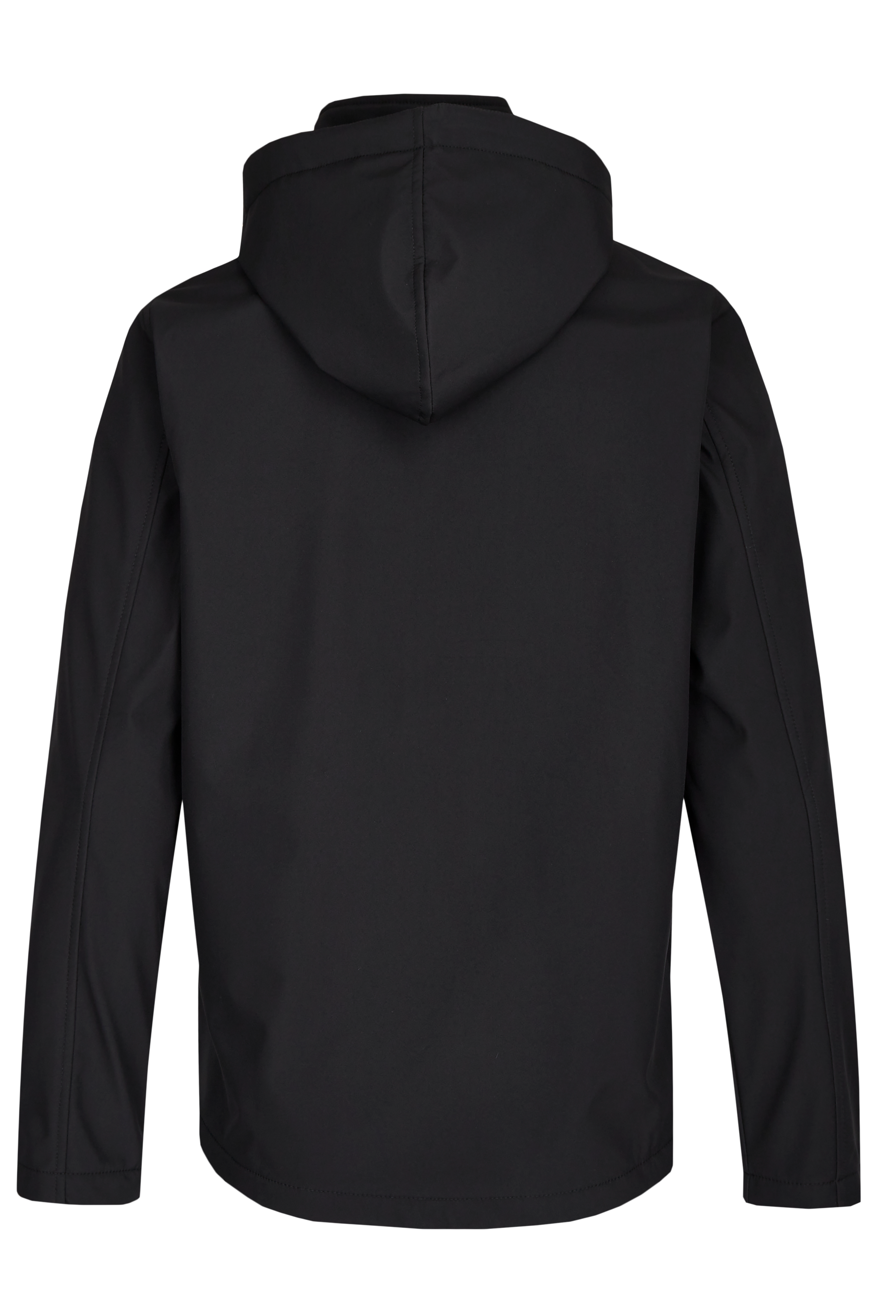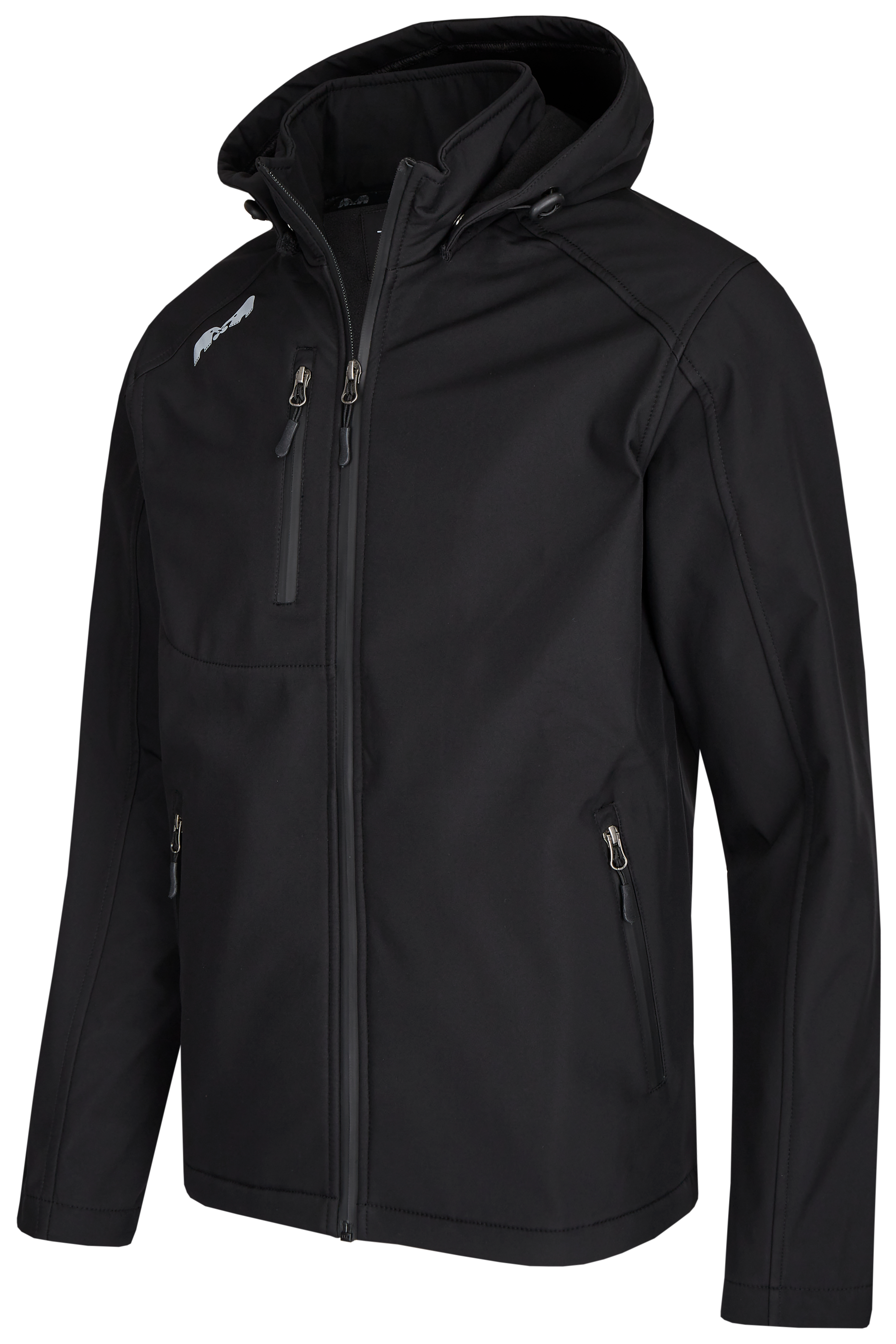 Wetterfeste Softshelljacke für Herren mit modernem Schnitt. Wasser- und windabweisende Beschichtung. Die Jacke verfügt über einen Frontreißverschluss und zwei Reißverschlusstaschen und hat eine abnehmbare Kapuze.