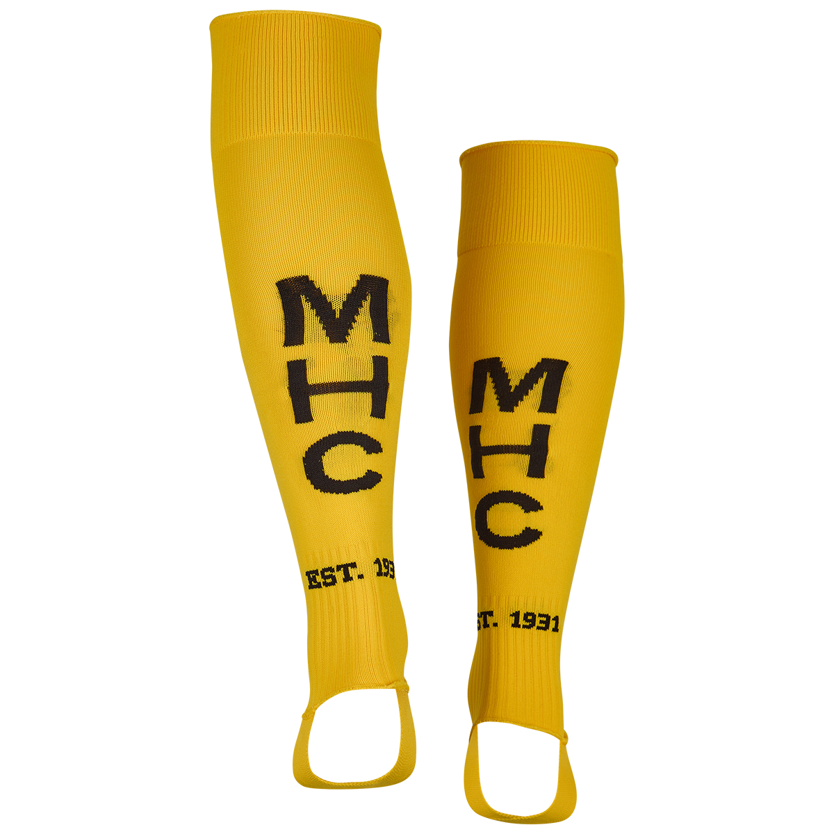 Die Club-Spielstutzen sind in schwarz oder gelb gehalten, tragen das MHC-Logo und sind Teil der offiziellen Spielausrüstung des Vereins.